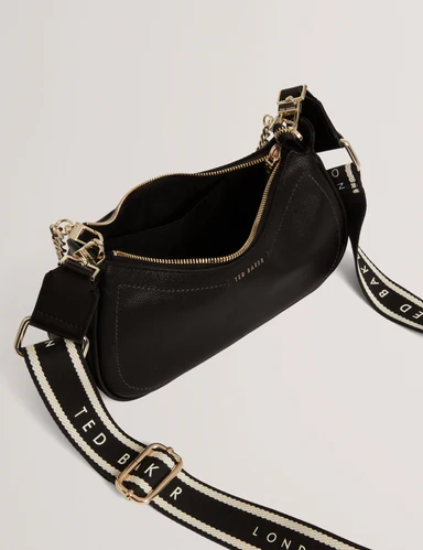Ted Baker Γυναικεία Τσάντα Χιαστί / Ώμου ( Webbing Leather Half Moon Crossbody Bag / Lorreen ) Μαύρο ( Black )