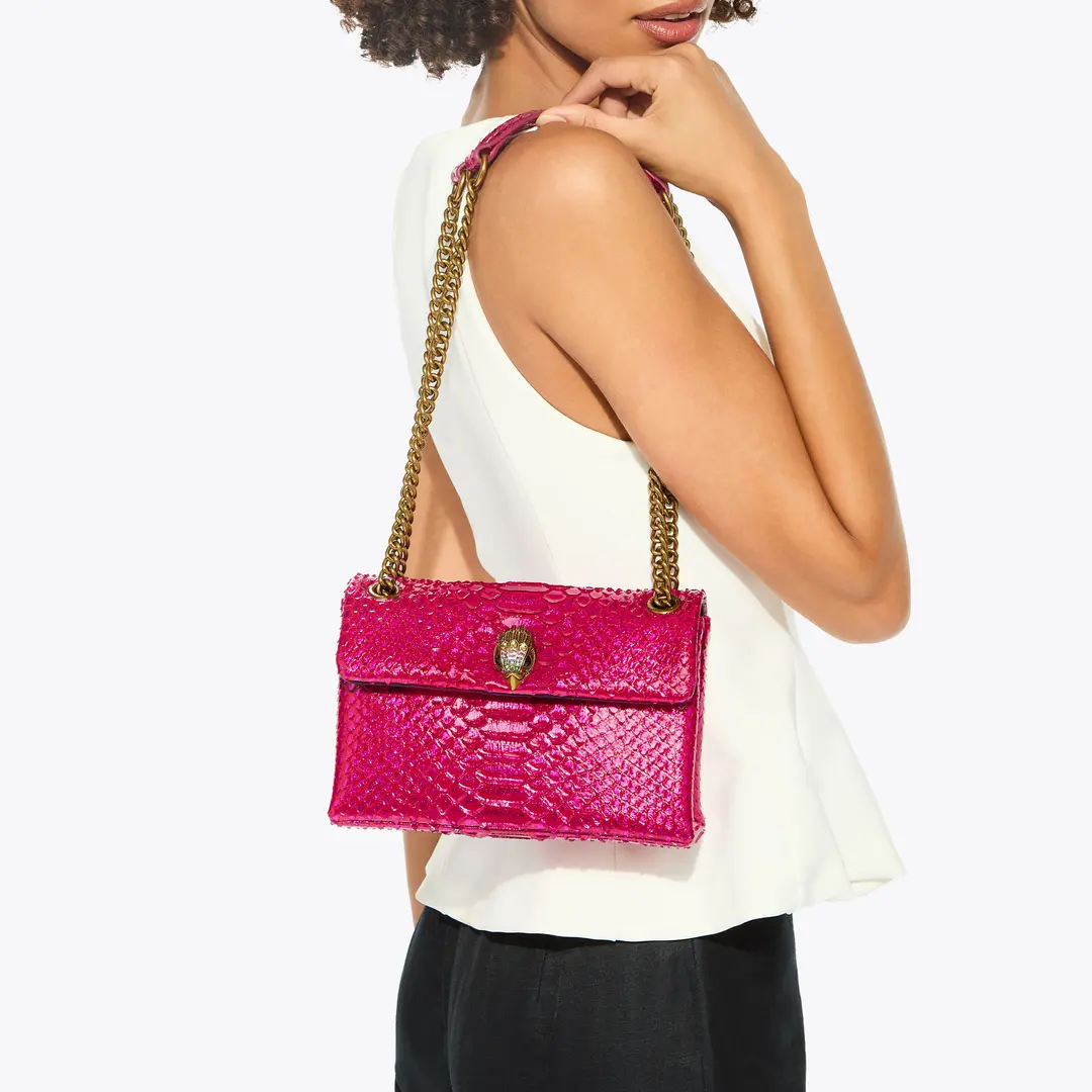 Kurt Geiger Γυναικείο Τσαντάκι Χιαστί / Ώμου ( Medium Leather Kensington Bag / Snake Print ) Έντονο Ροζ / Φούξια ( Fuchsia )