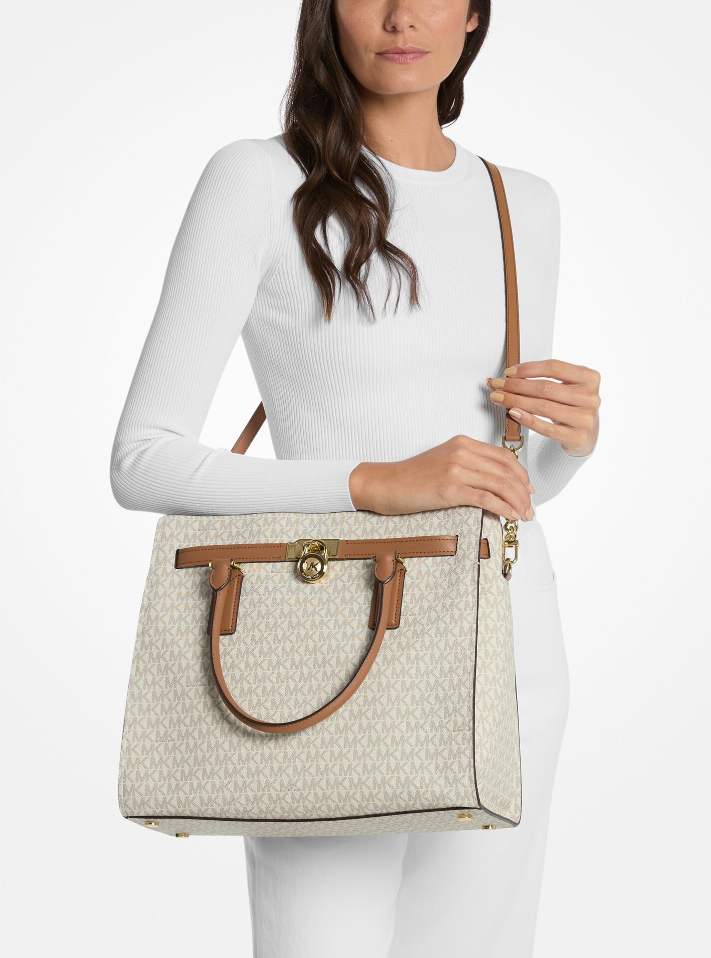 Michael Kors Γυναικεία Τσάντα Χειρός / Χιαστί ( LG Satchel Signature Logo / Hamilton Moderne ) Μπεζ / Ταμπά ( Vanilla / Acorn )